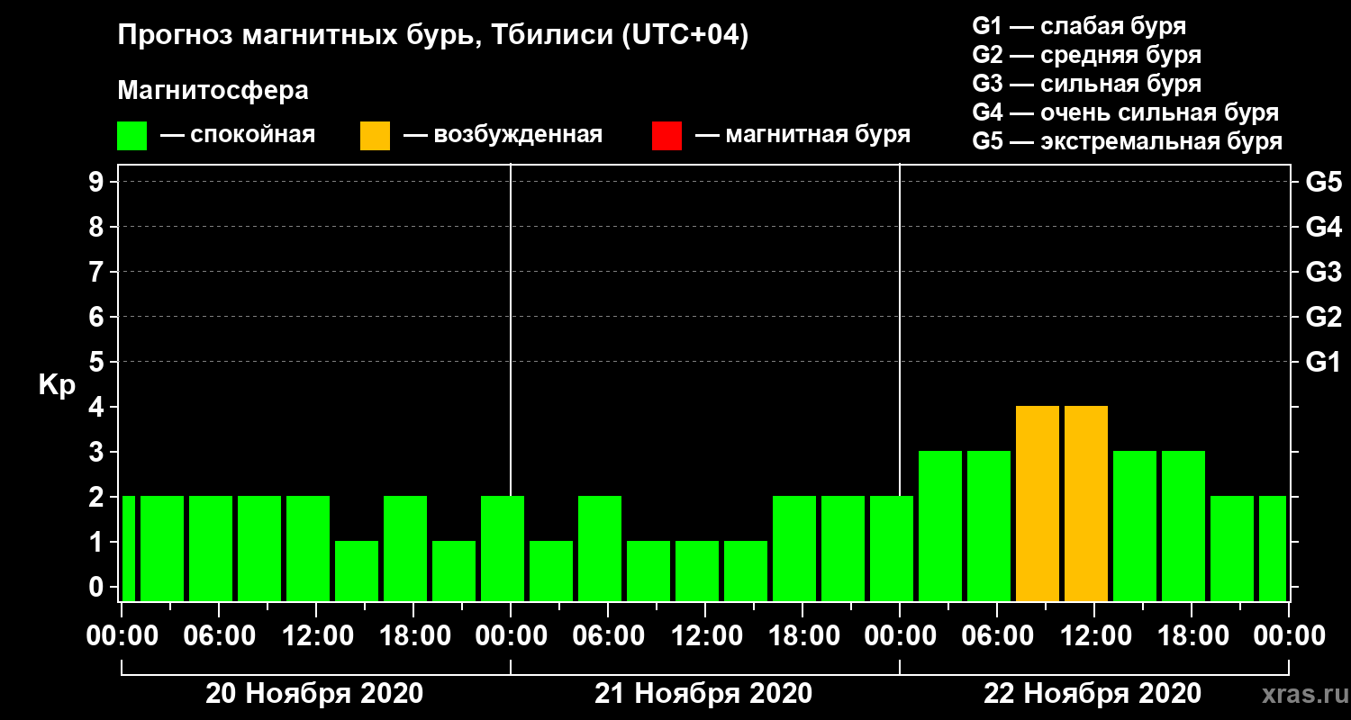 Прогноз магнитных бурь Тбилиси — 20 ноября 2020 года