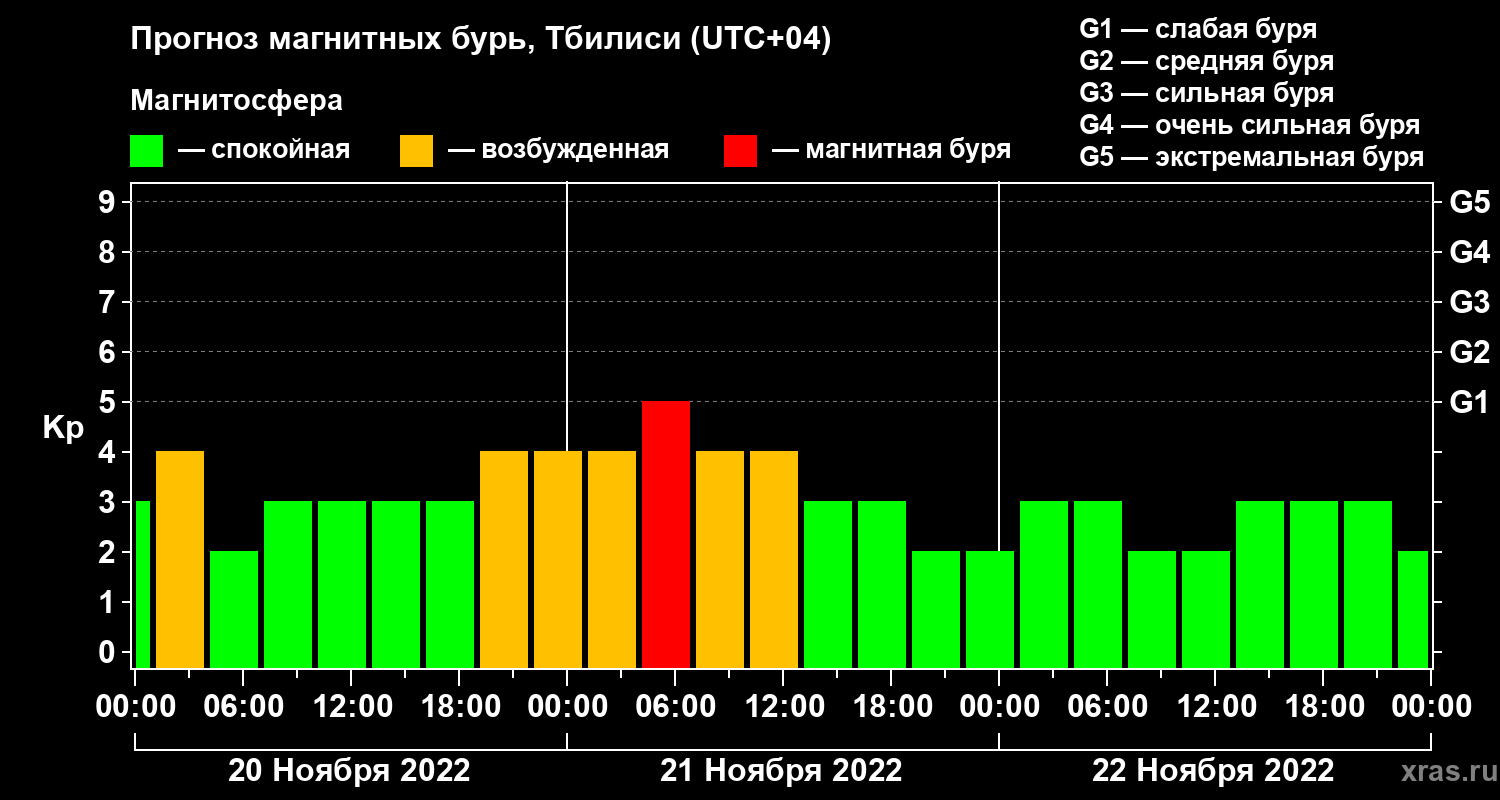 Прогноз магнитных бурь Тбилиси — 20 ноября 2022 года