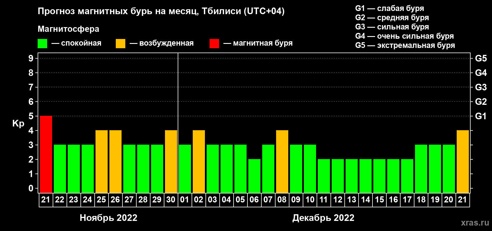Прогноз магнитных бурь Тбилиси — 21 ноября 2022 года