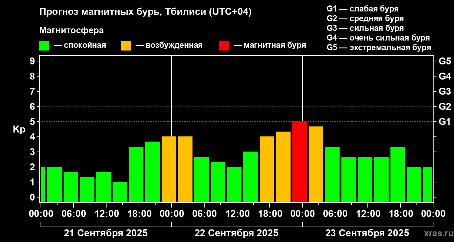 Прогноз магнитных бурь Тбилиси — 21 сентября 2025 года