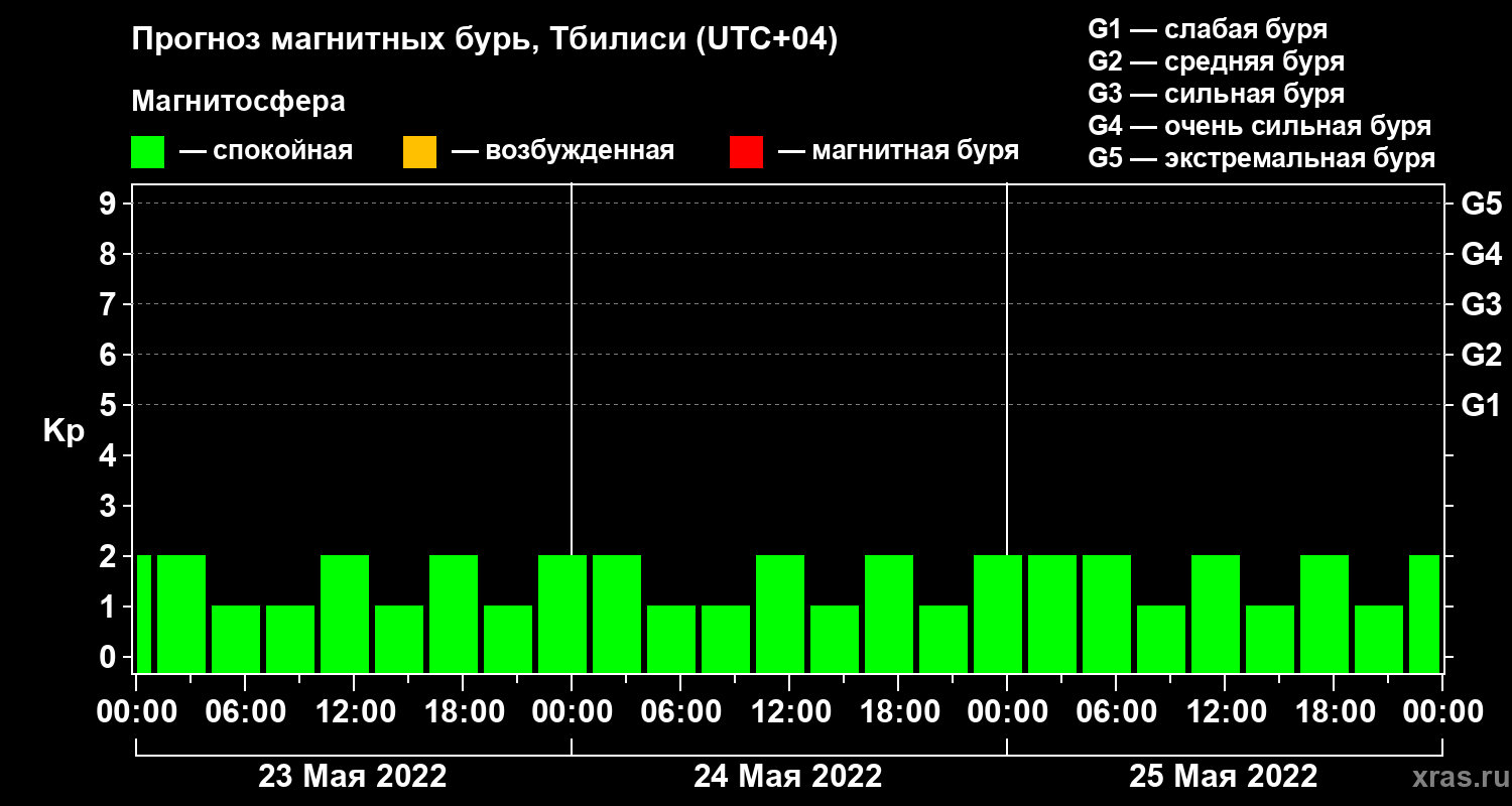 Прогноз магнитных бурь Тбилиси — 23 мая 2022 года