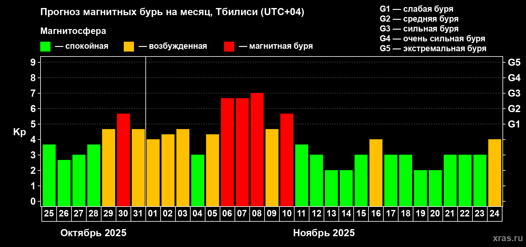 Прогноз магнитных бурь Тбилиси — 25 октября 2025 года