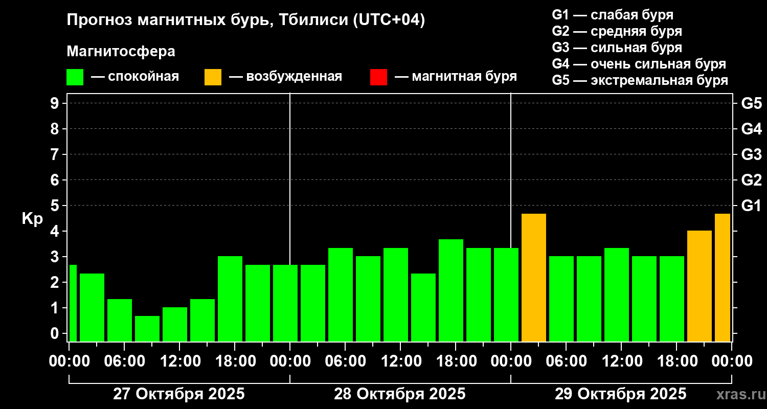 Прогноз магнитных бурь Тбилиси — 27 октября 2025 года