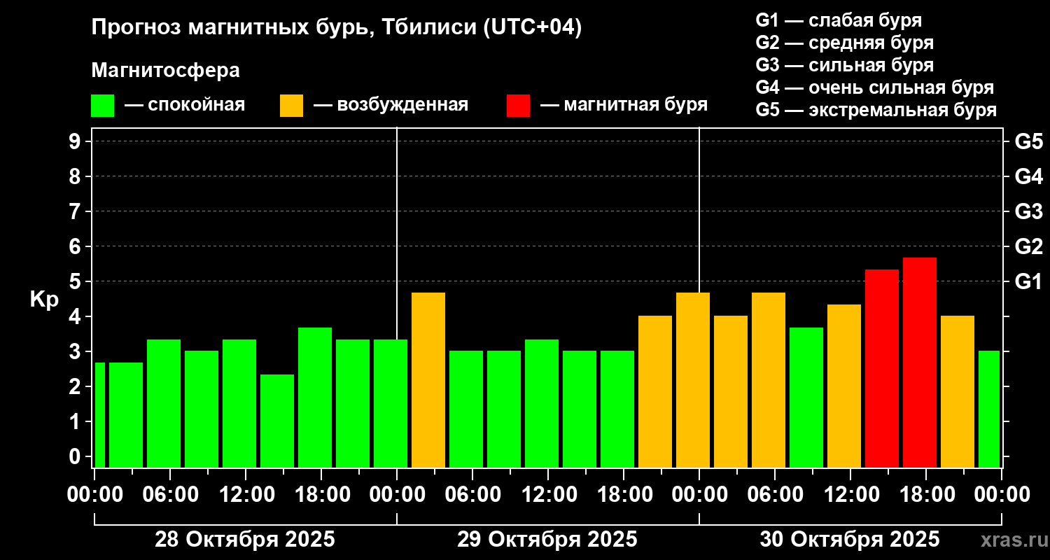 Прогноз магнитных бурь Тбилиси — 28 октября 2025 года