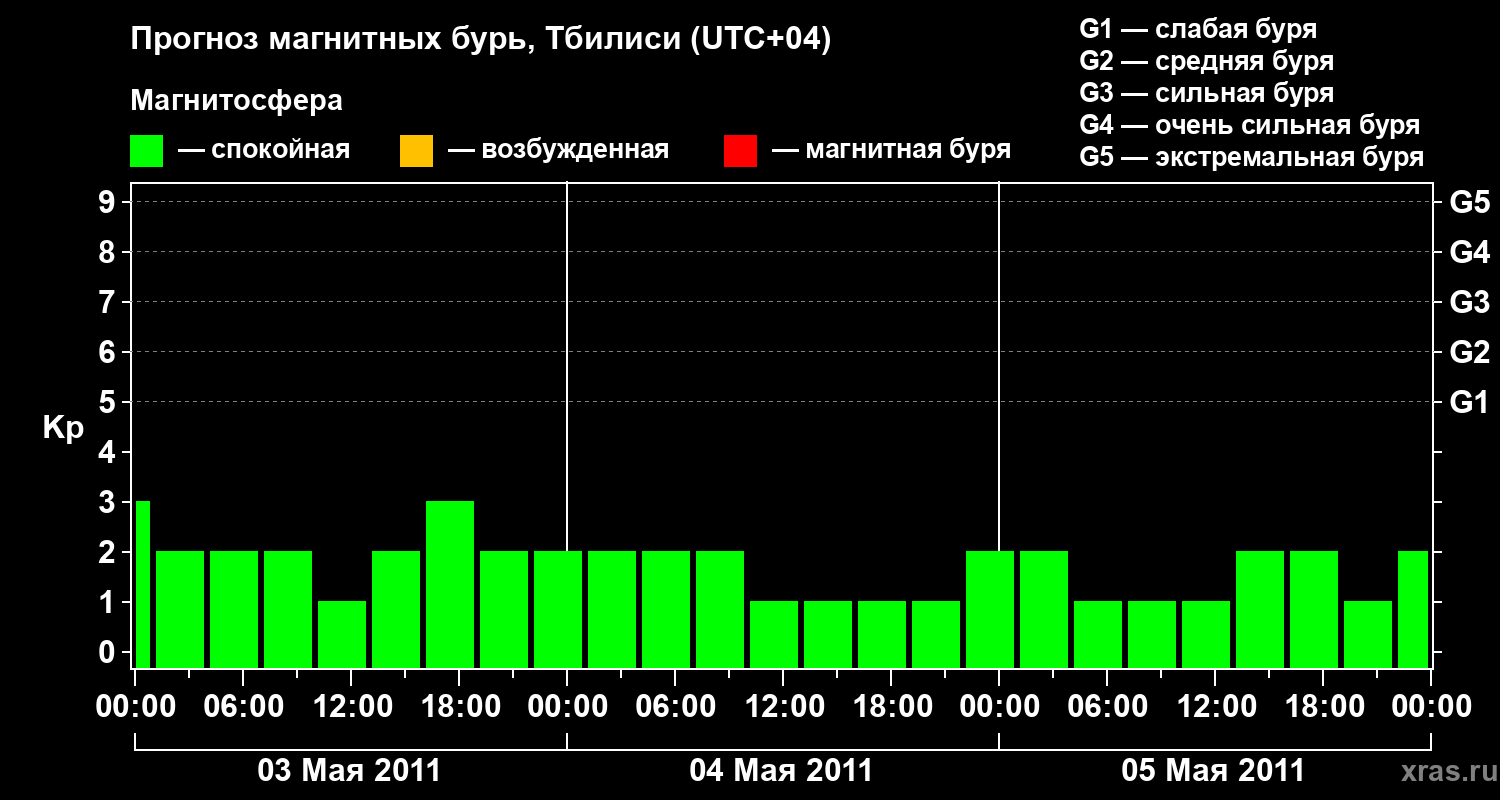 Прогноз магнитных бурь Тбилиси — 3 мая 2011 года