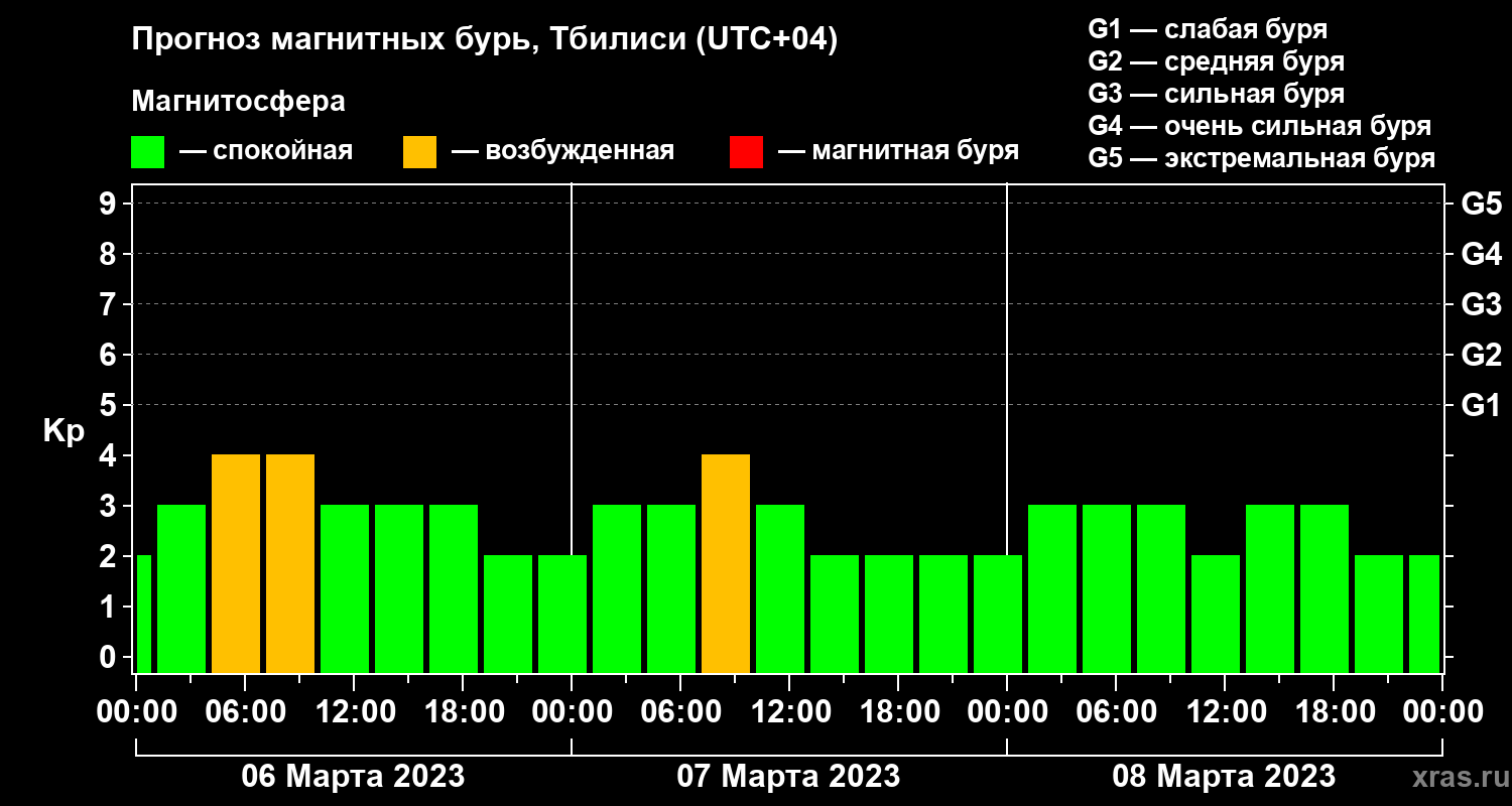 Прогноз магнитных бурь Тбилиси — 6 марта 2023 года
