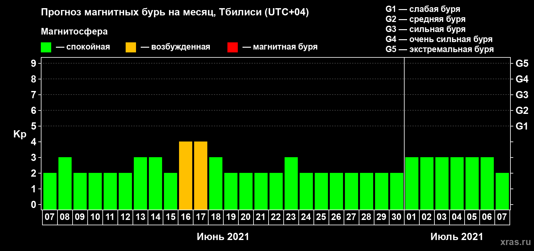 Прогноз магнитных бурь Тбилиси — 7 июня 2021 года