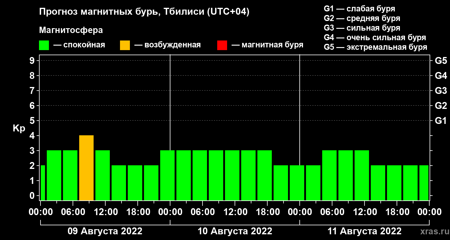 Прогноз магнитных бурь Тбилиси — 9 августа 2022 года