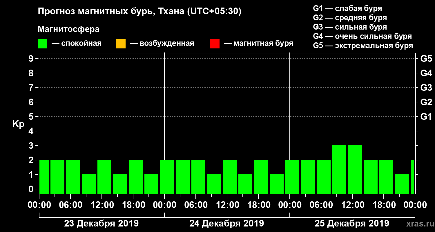 Прогноз магнитных бурь в Тхане — 23 декабря 2019 года
