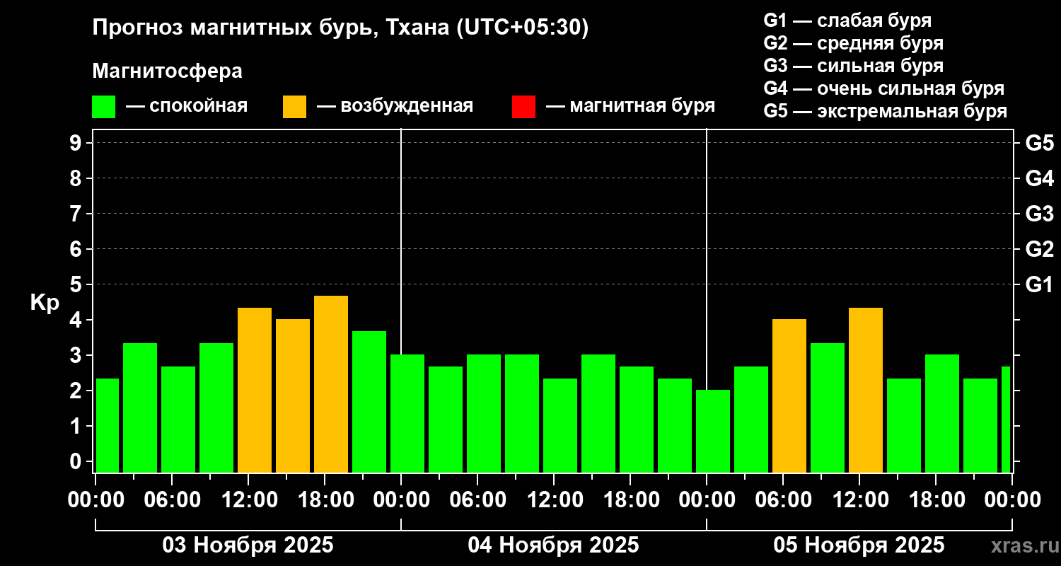 Прогноз магнитных бурь в Тхане — 3 ноября 2025 года