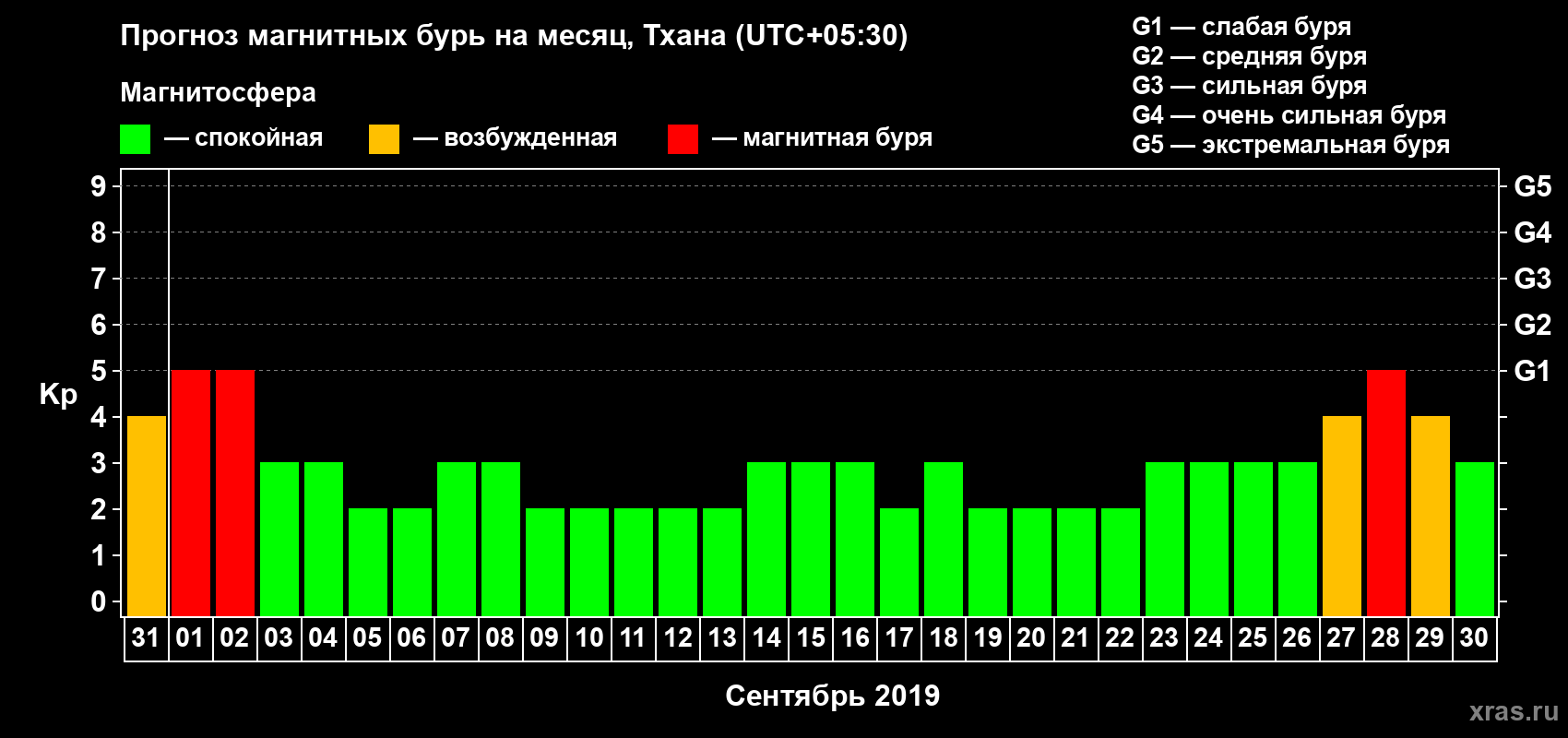 Прогноз магнитных бурь в Тхане — 31 августа 2019 года
