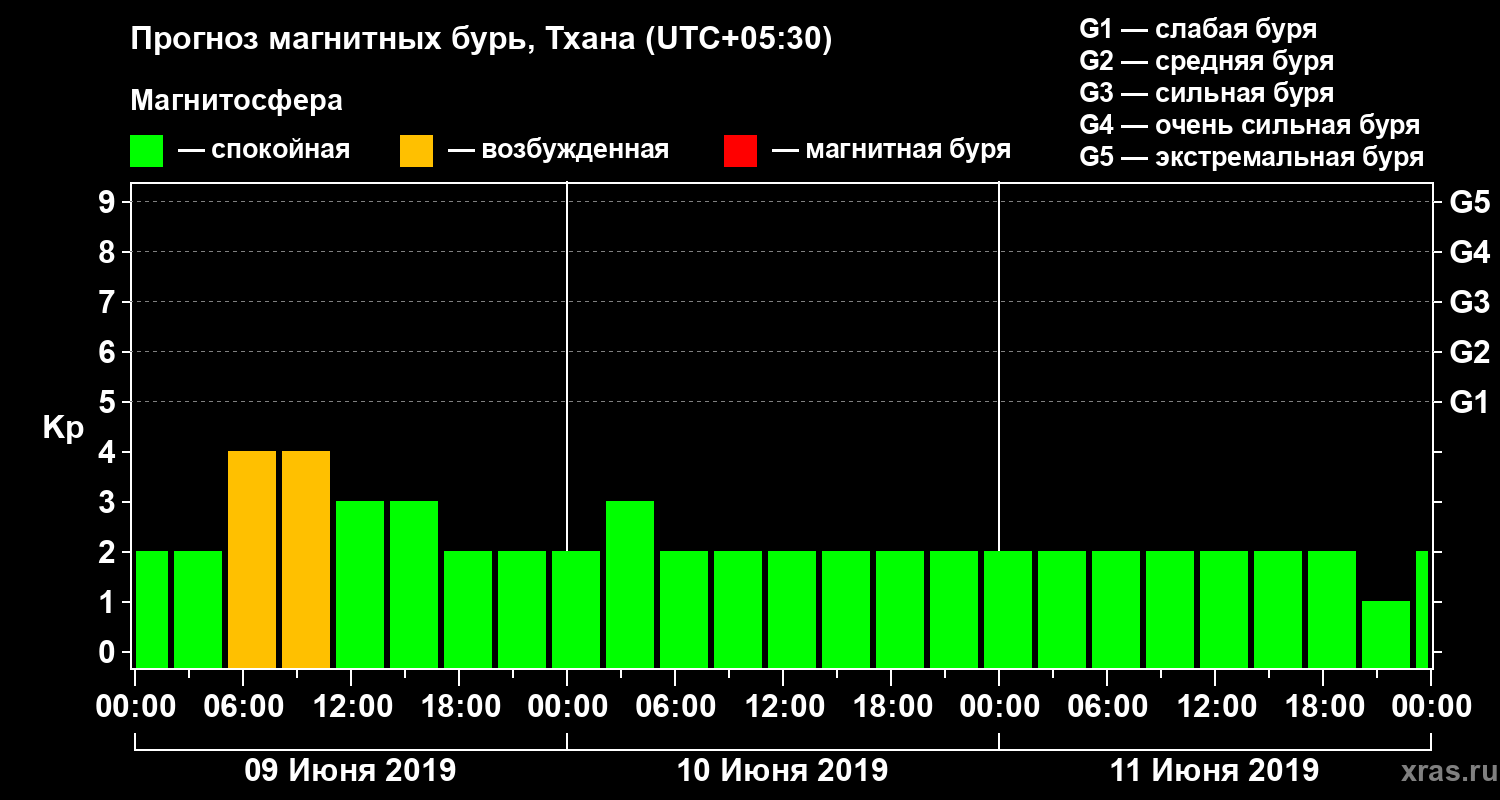 Прогноз магнитных бурь в Тхане — 9 июня 2019 года