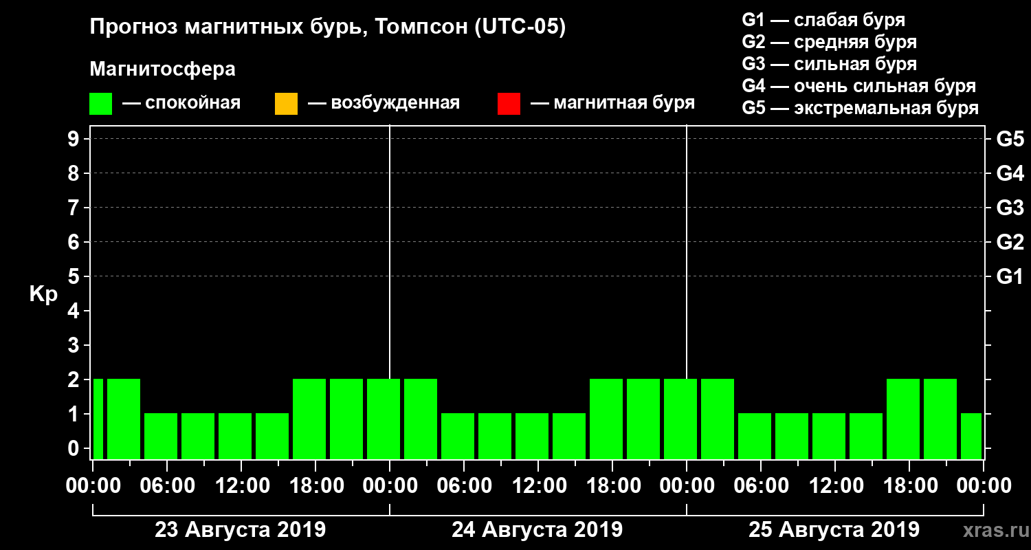Прогноз магнитных бурь в Томпсоне — 23 августа 2019 года