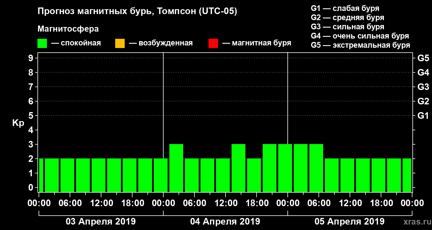 Прогноз магнитных бурь в Томпсоне — 3 апреля 2019 года