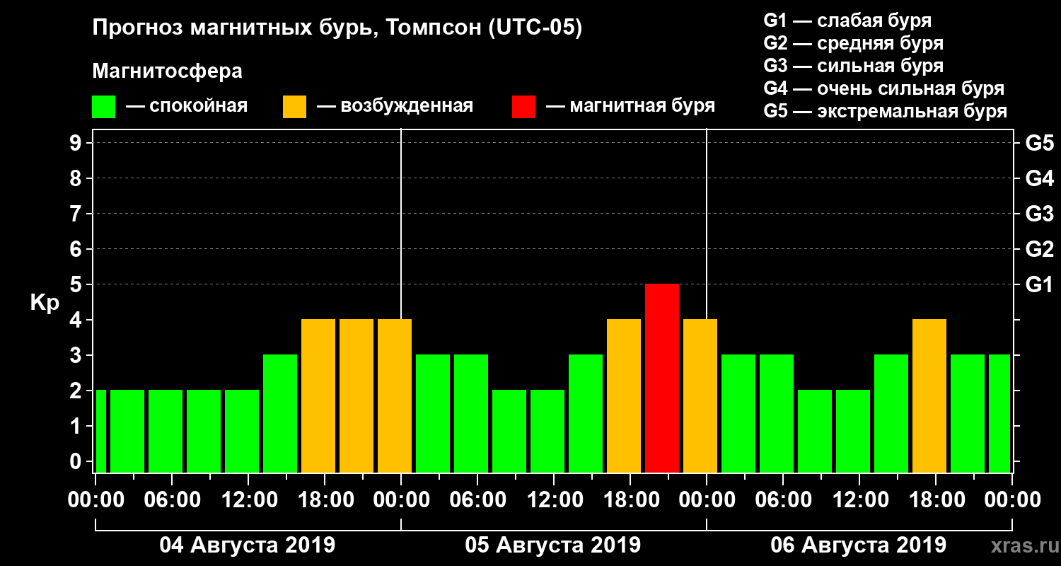 Прогноз магнитных бурь в Томпсоне — 4 августа 2019 года