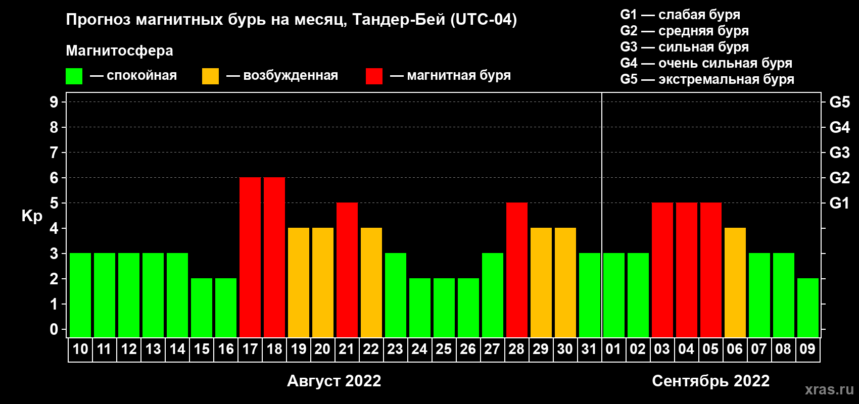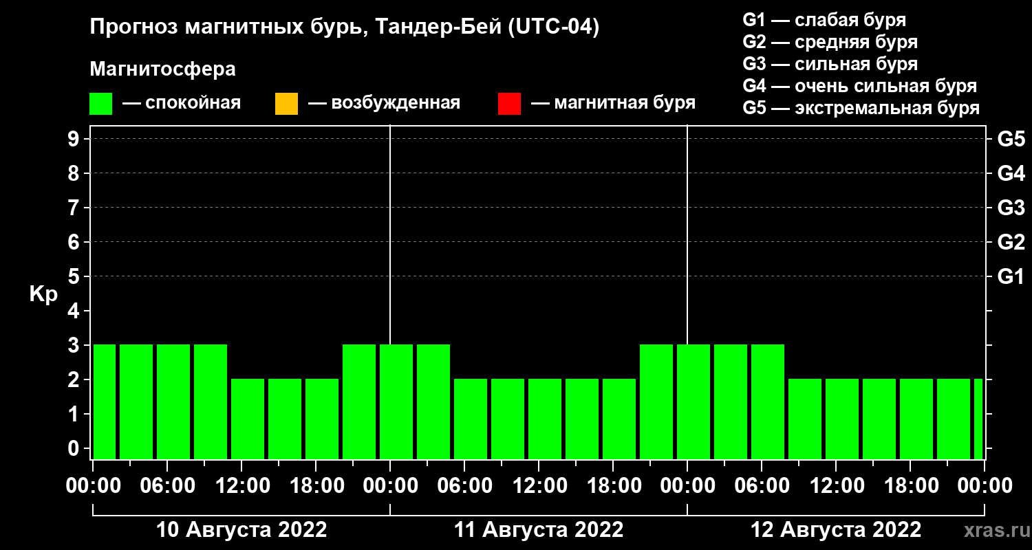 Прогноз магнитных бурь в Тандер-Бейе на 10 августа 2022 года