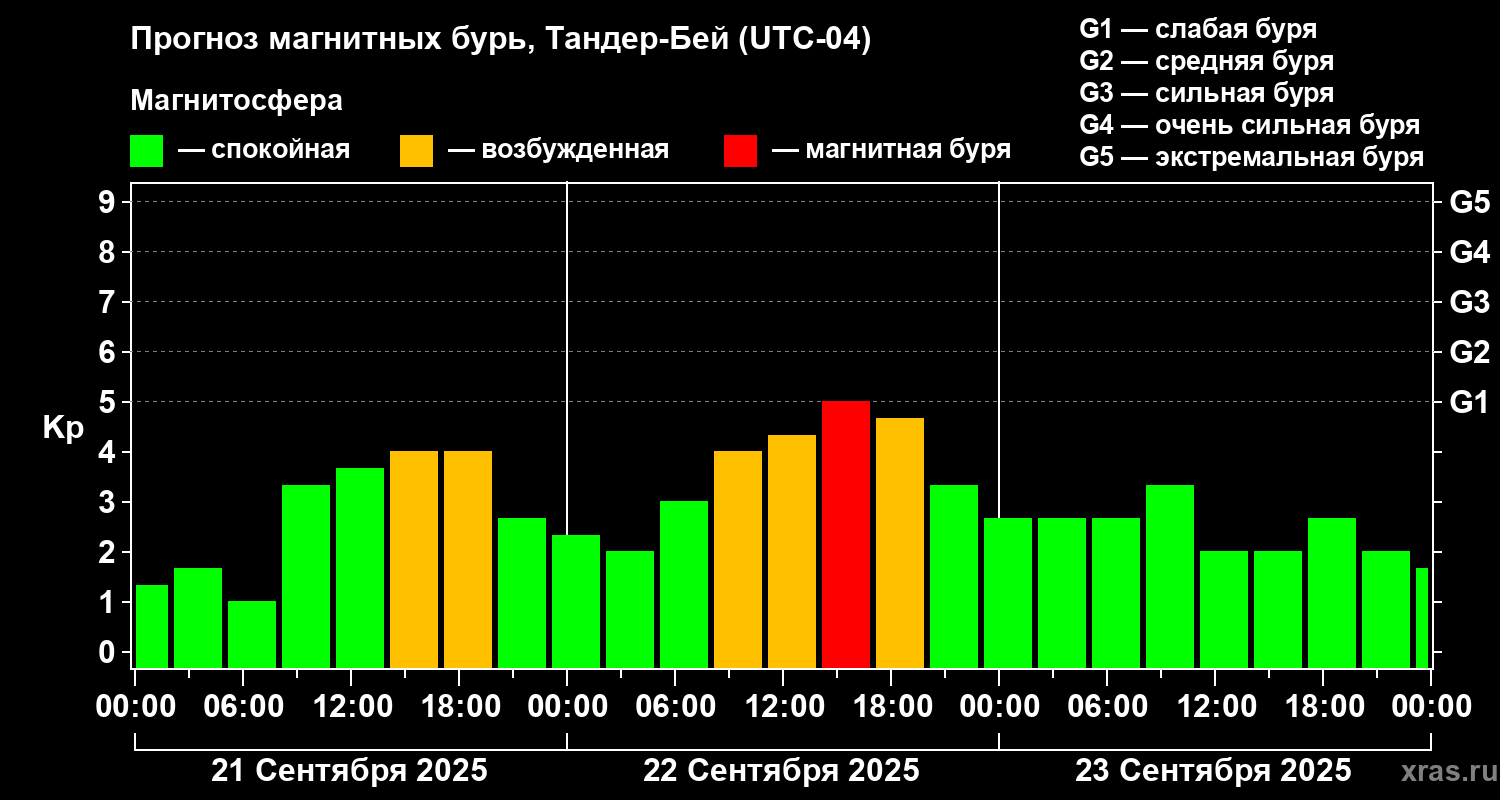 Прогноз магнитных бурь в Тандер-Бейе на 21 сентября 2025 года
