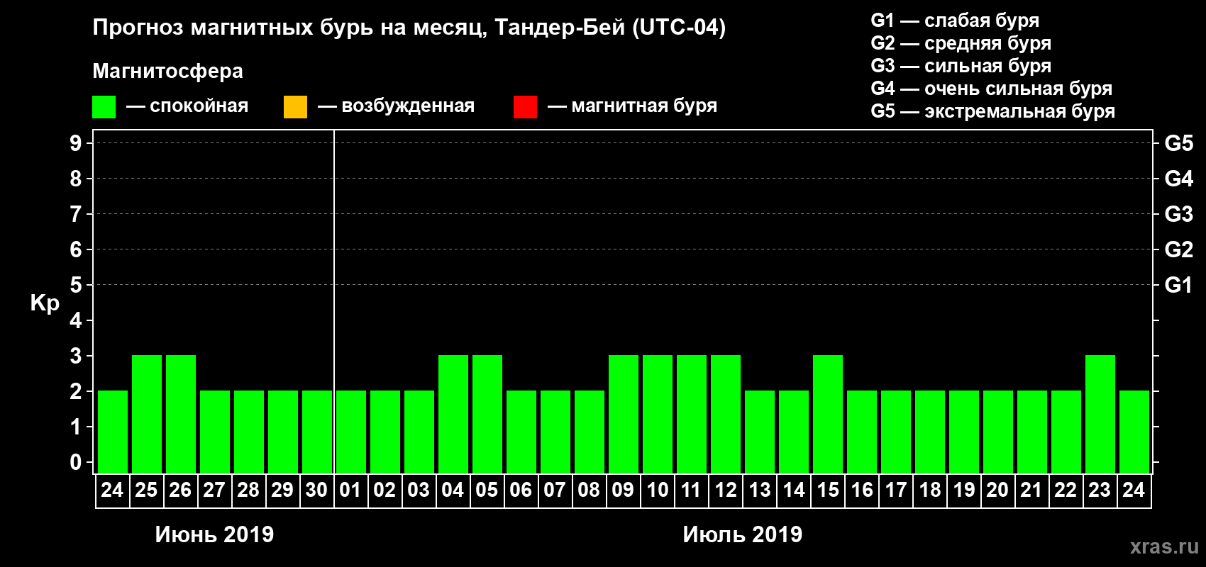 Прогноз магнитных бурь в Тандер-Бейе — 24 июня 2019 года