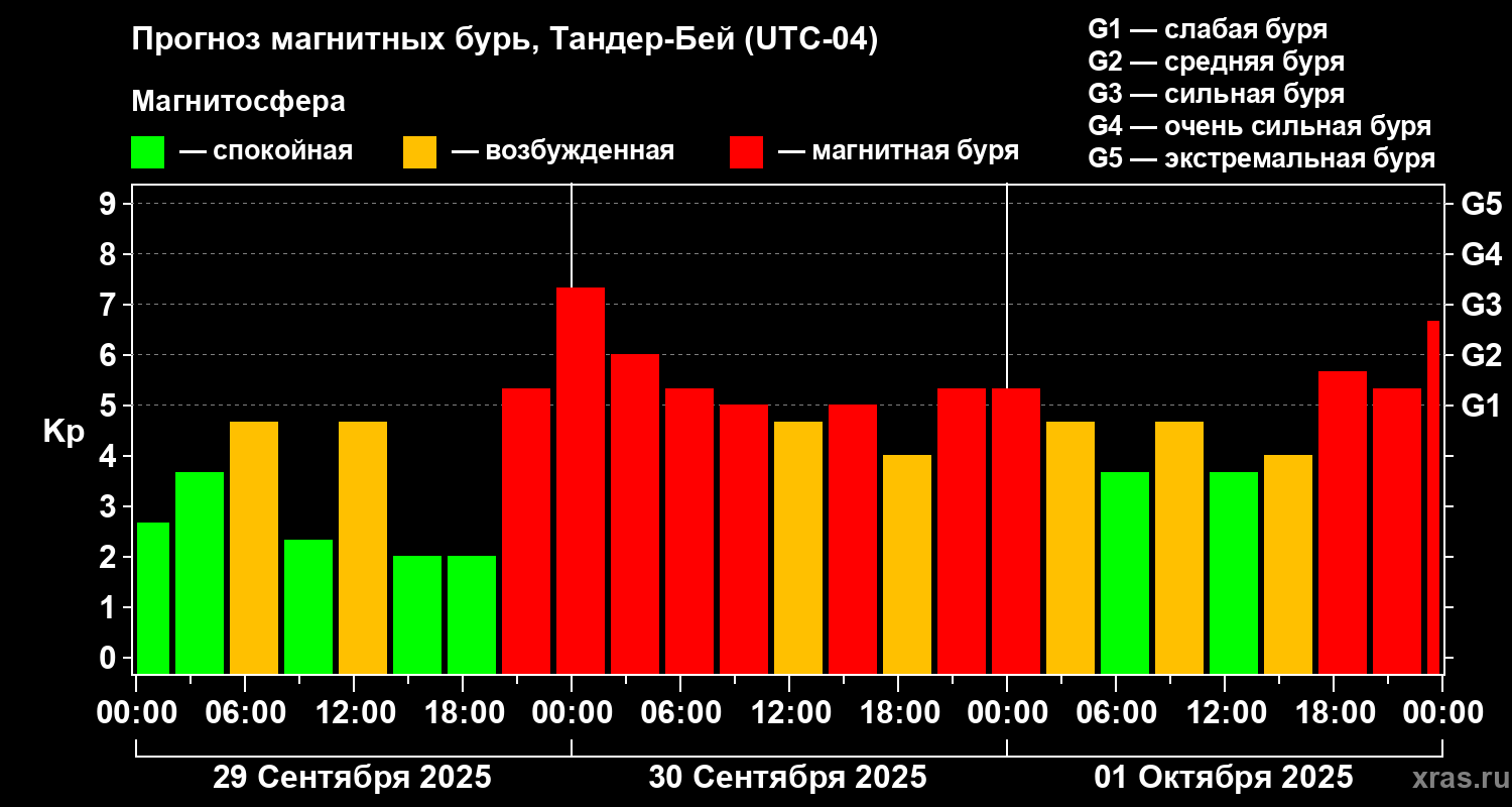 Прогноз магнитных бурь в Тандер-Бейе на 29 сентября 2025 года