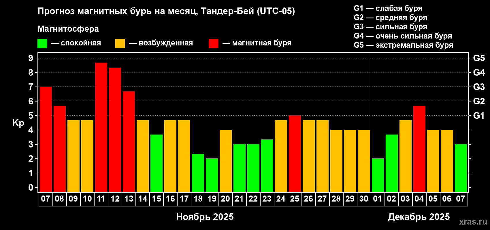 Прогноз магнитных бурь в Тандер-Бейе — 7 ноября 2025 года