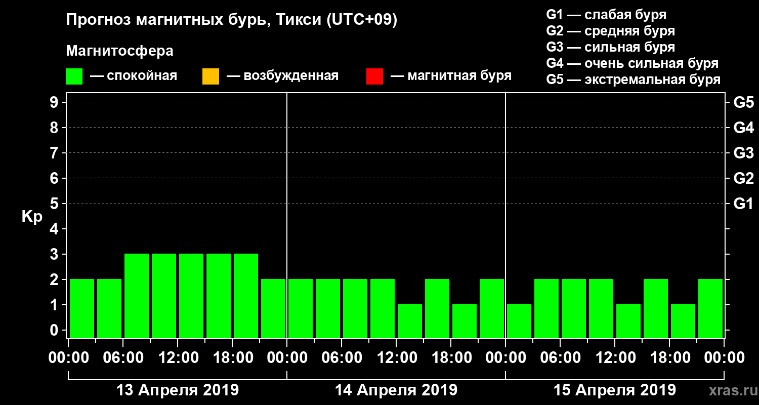 Прогноз магнитных бурь Тикси на 13 апреля 2019 года