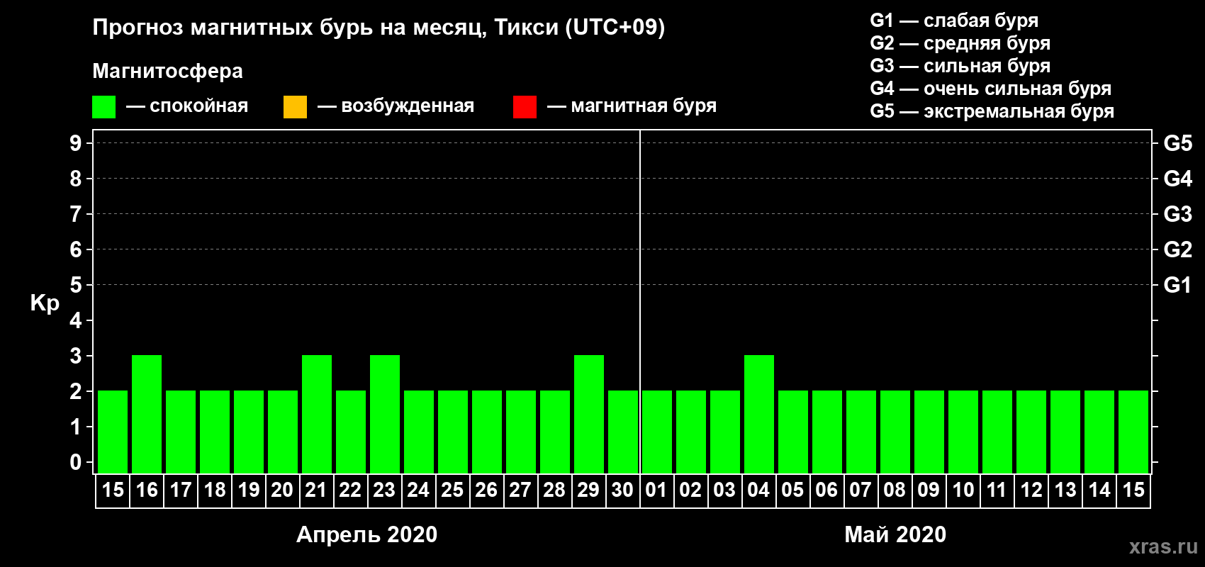 Прогноз магнитных бурь Тикси — 15 апреля 2020 года