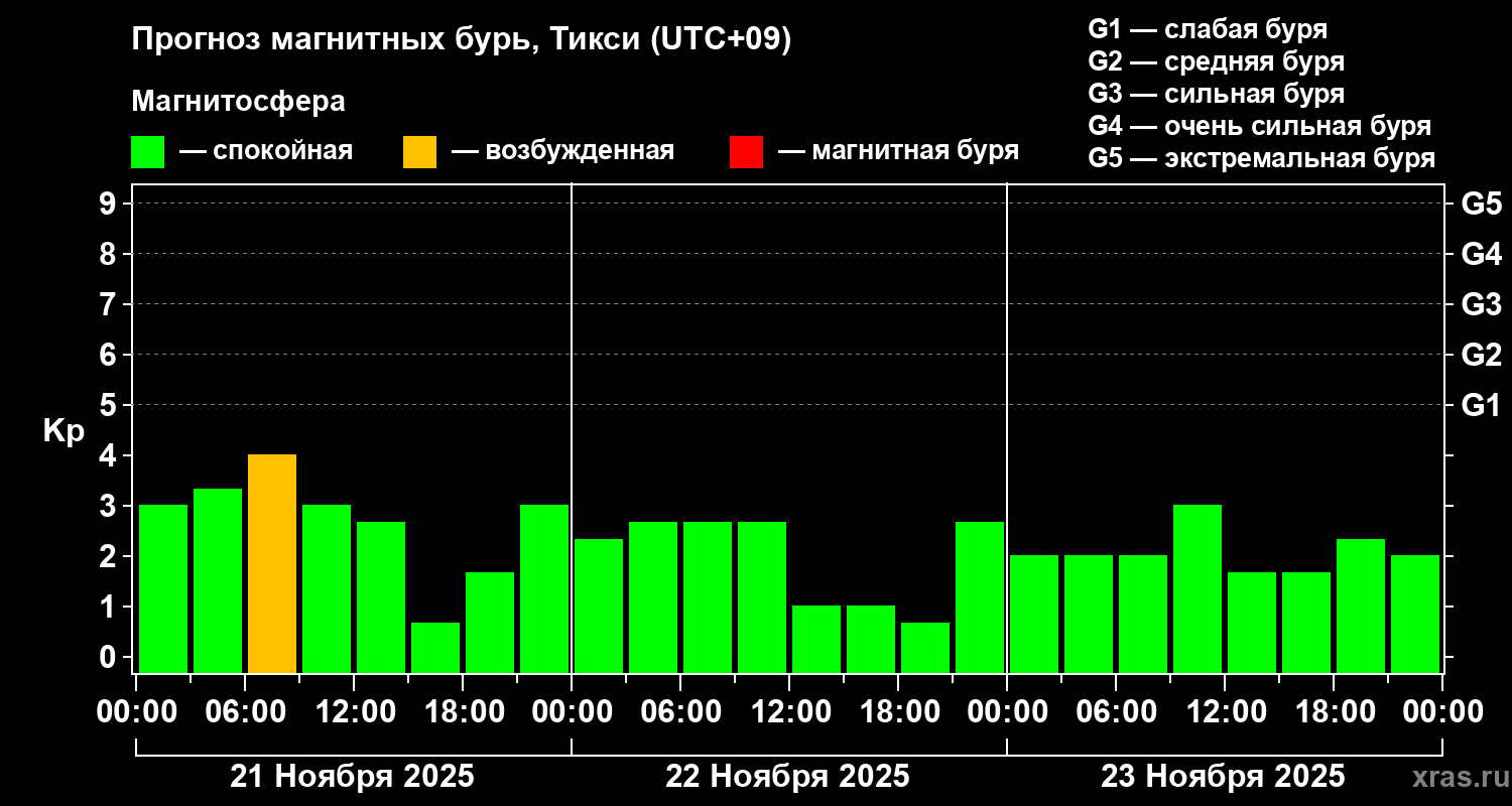 Прогноз магнитных бурь Тикси — 21 ноября 2025 года