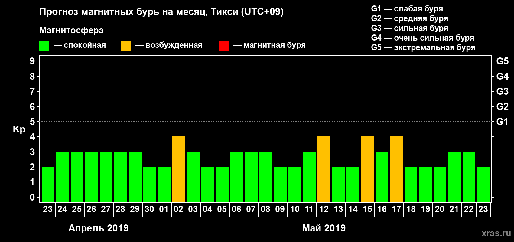 Прогноз магнитных бурь Тикси — 23 апреля 2019 года