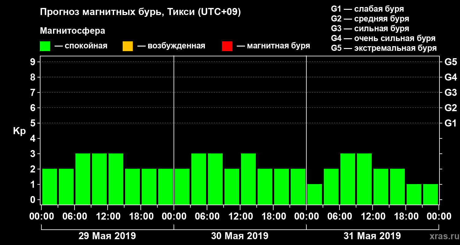 Прогноз магнитных бурь Тикси — 29 мая 2019 года