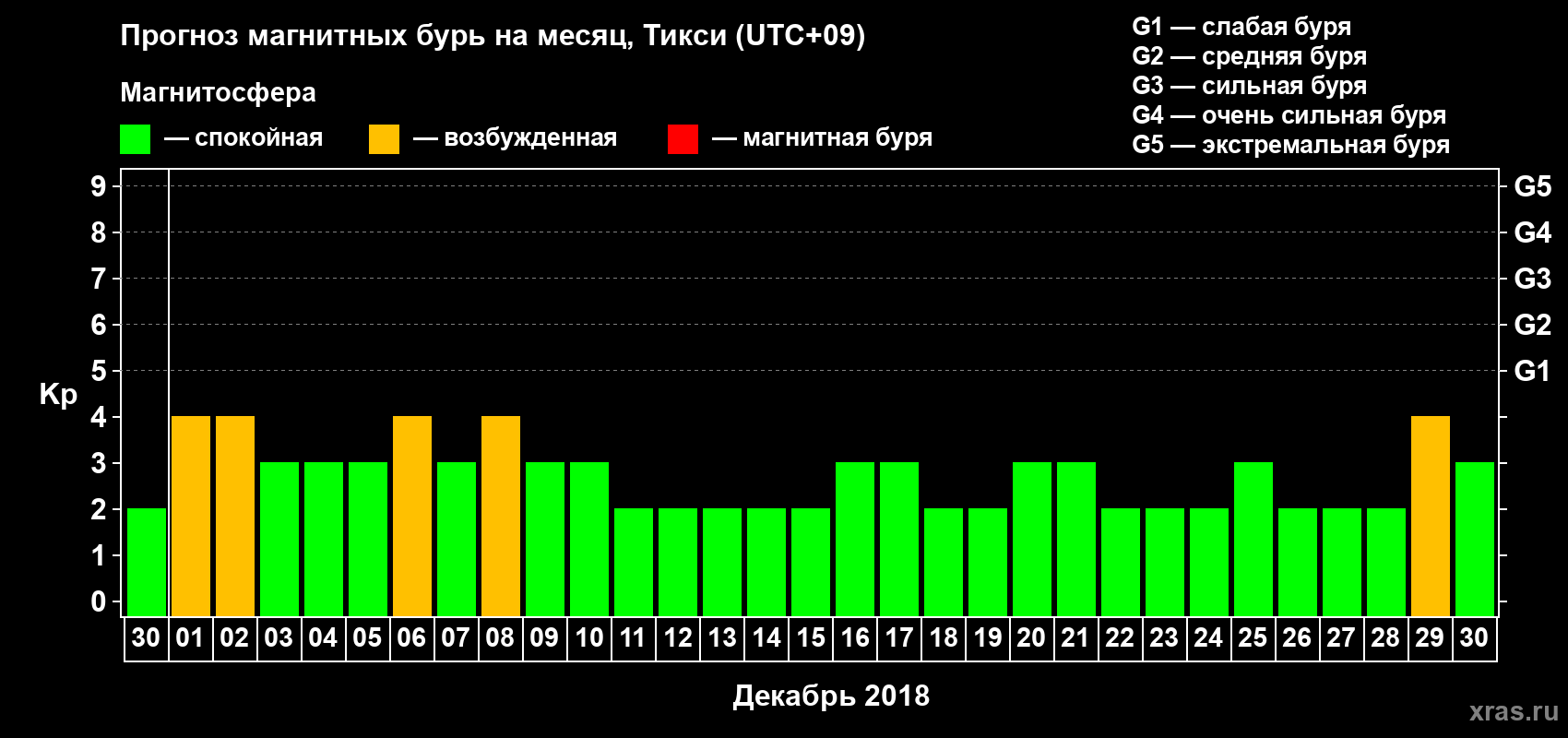 Прогноз магнитных бурь Тикси — 30 ноября 2018 года