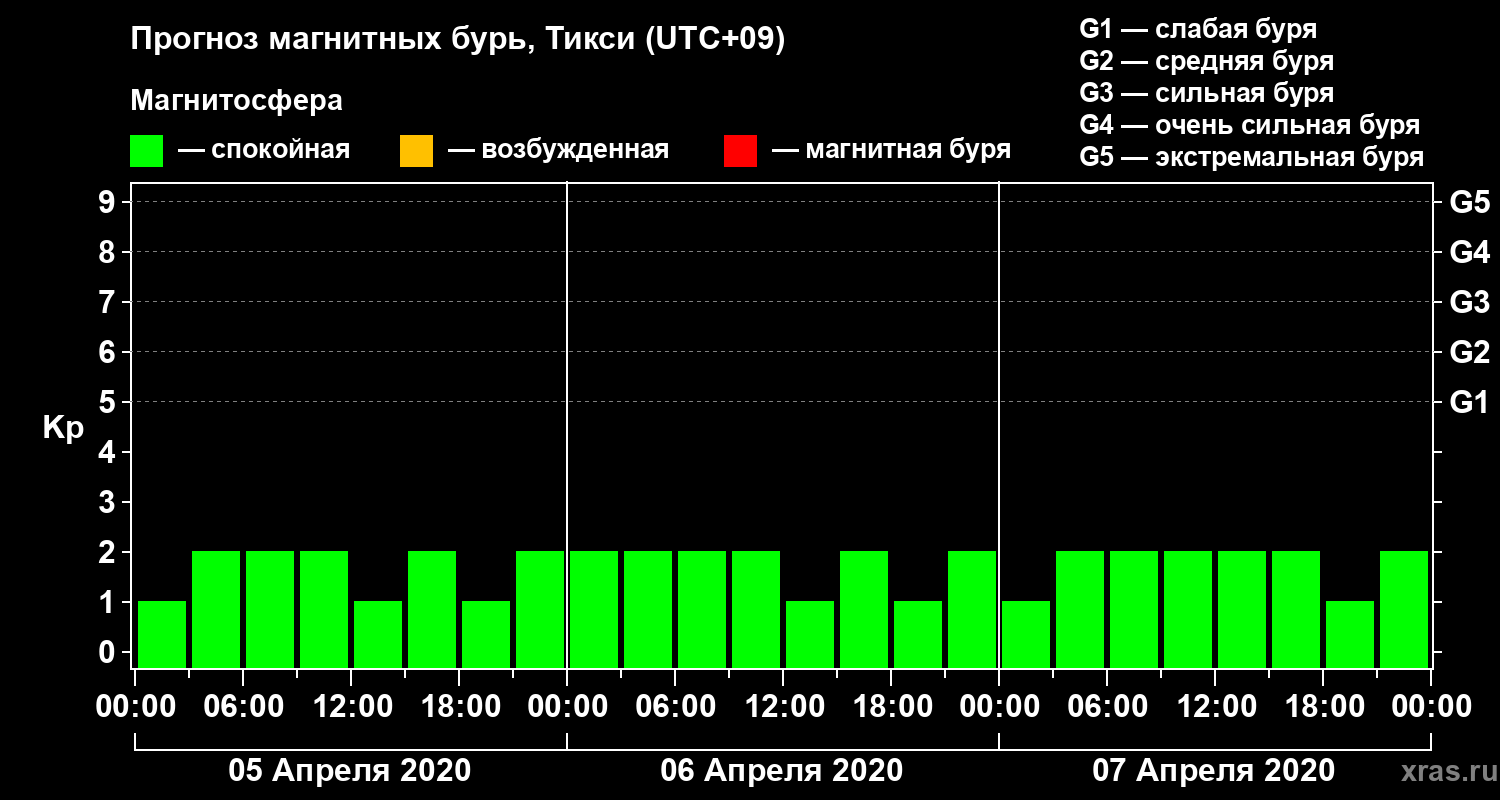 Прогноз магнитных бурь Тикси на 5 апреля 2020 года