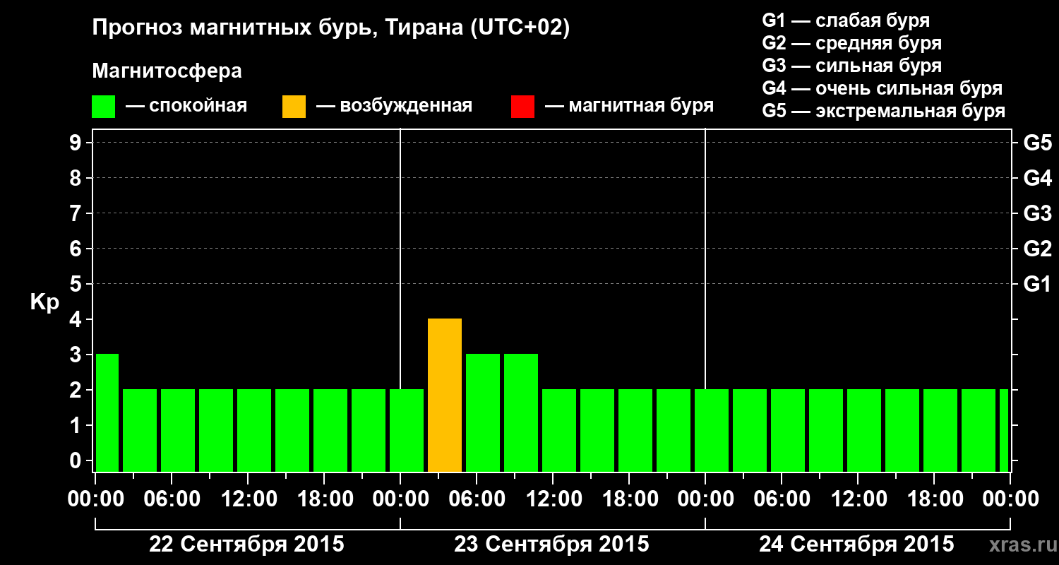 Прогноз магнитных бурь в Тиране — 22 сентября 2015 года