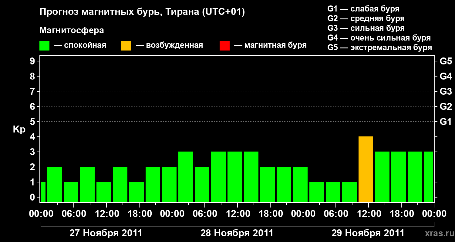 Прогноз магнитных бурь в Тиране — 27 ноября 2011 года