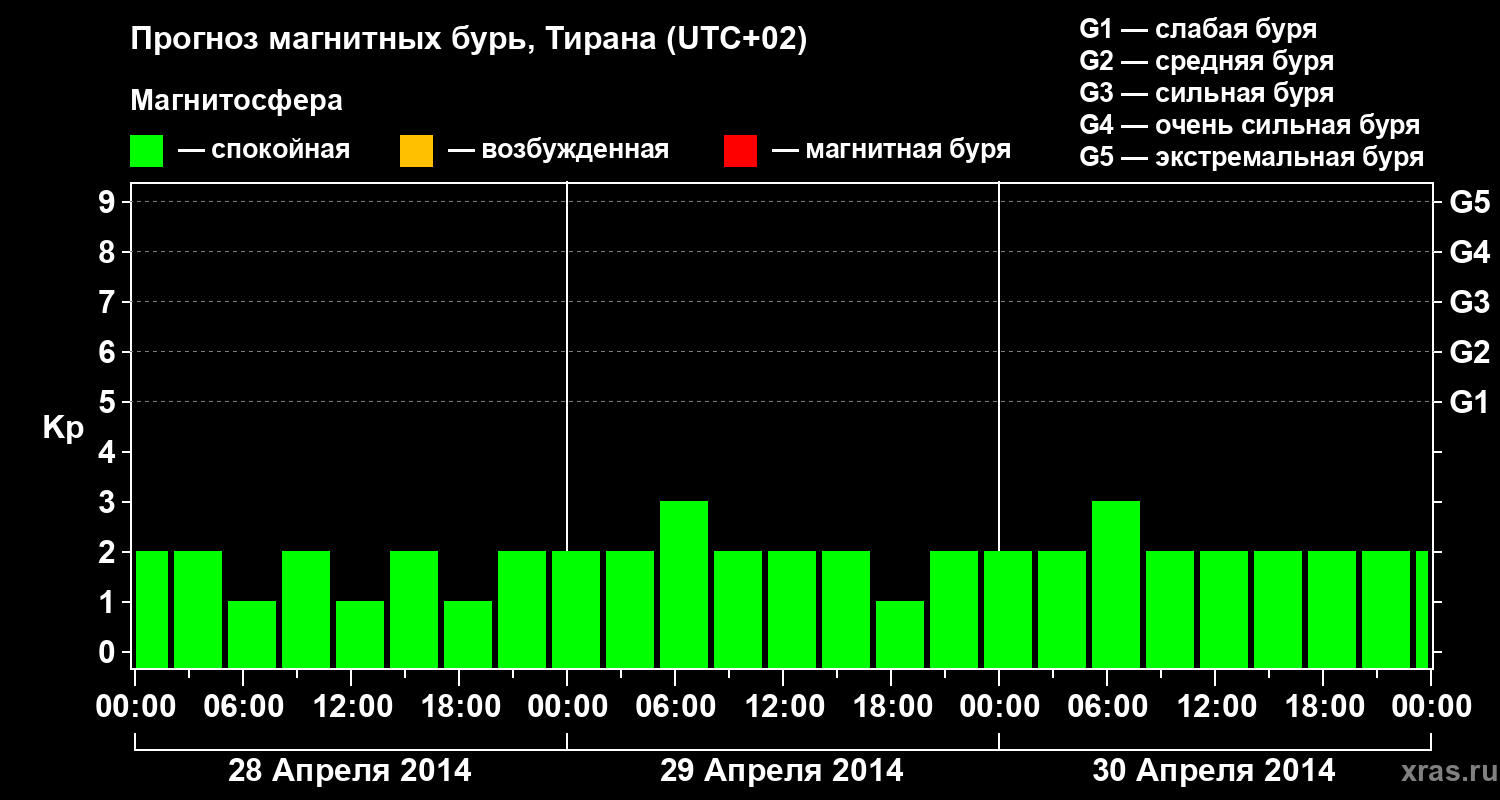 Прогноз магнитных бурь в Тиране — 28 апреля 2014 года