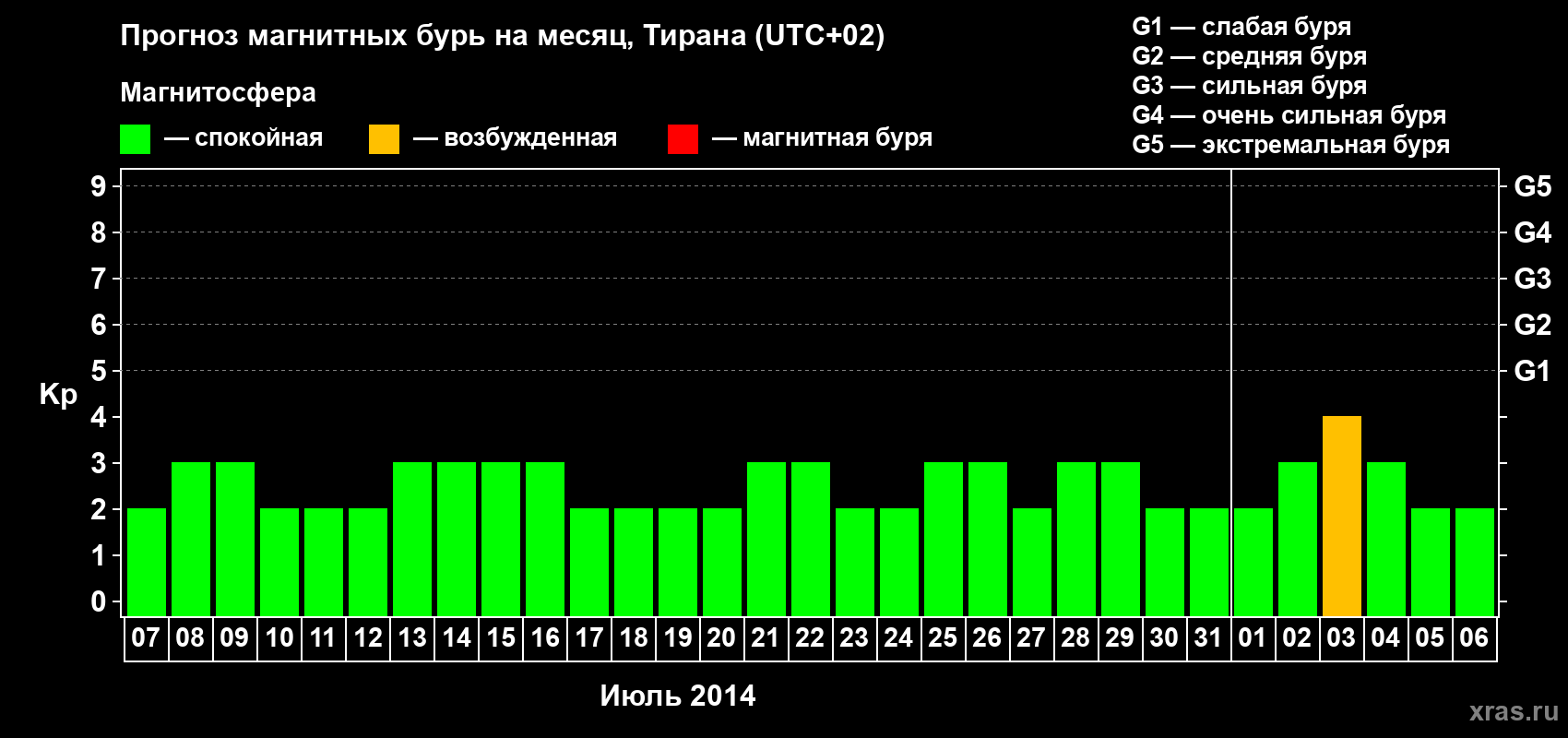Прогноз магнитных бурь в Тиране — 7 июля 2014 года