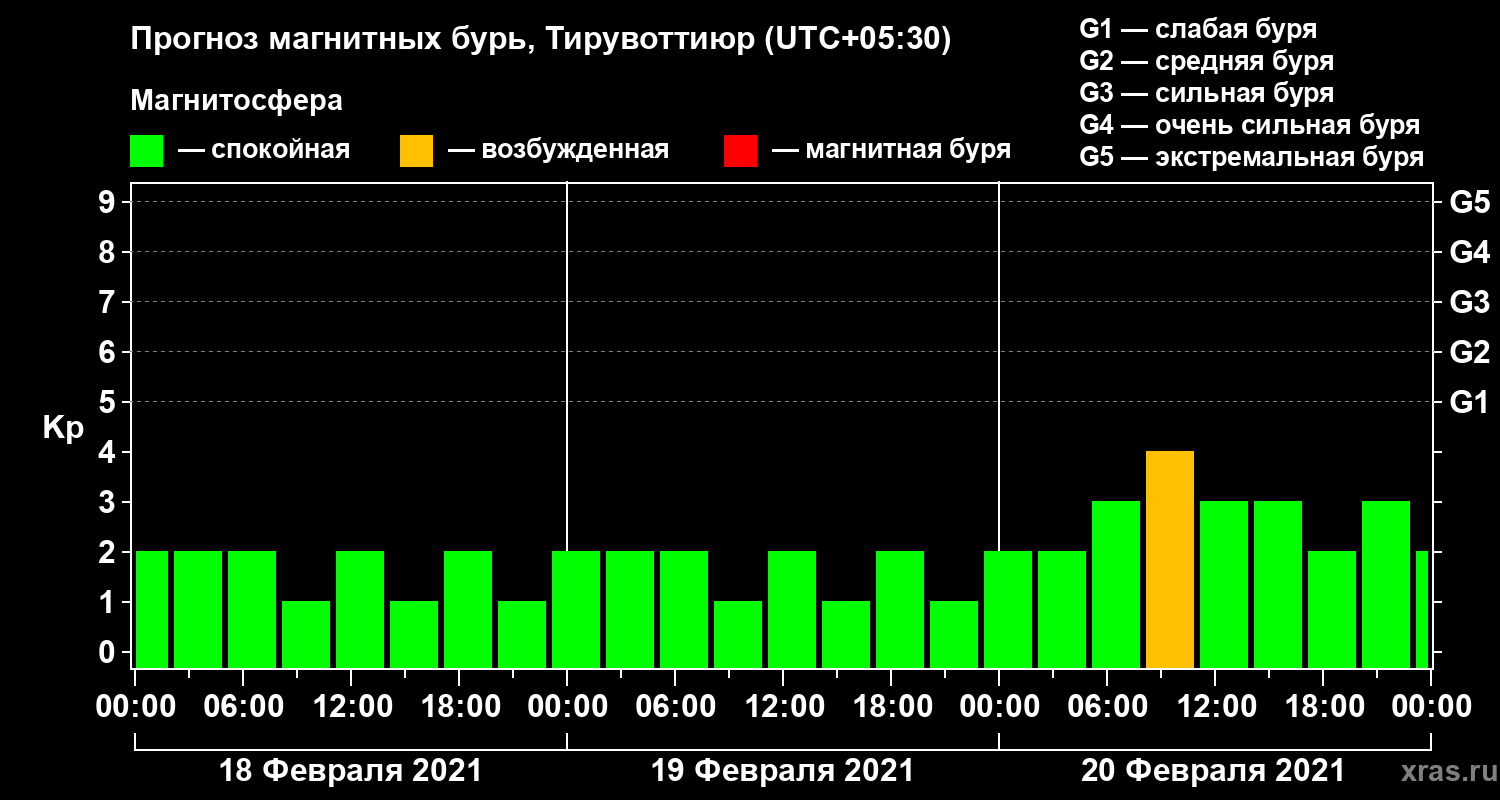 Прогноз магнитных бурь в Тирувоттиюре — 18 февраля 2021 года