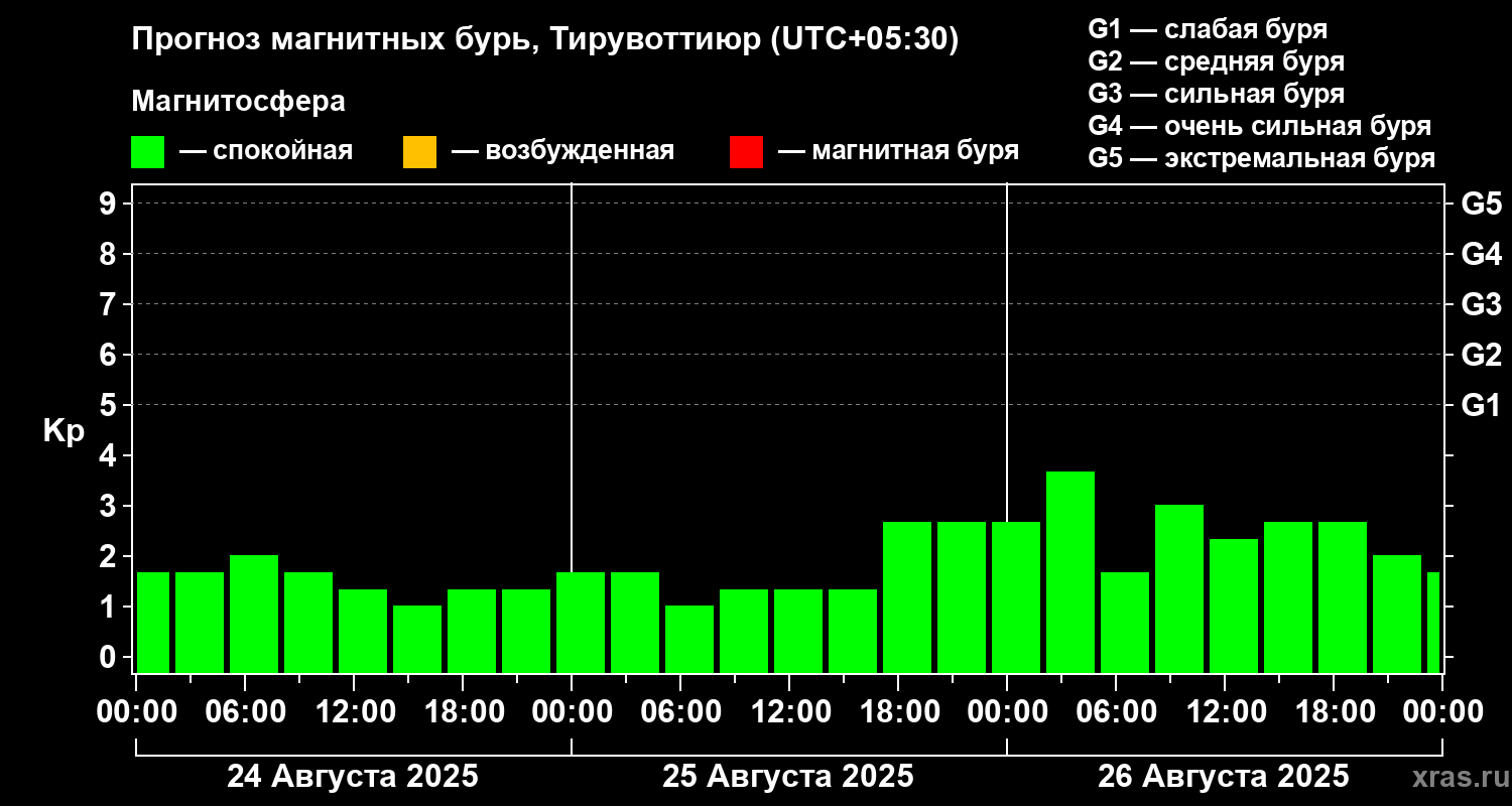 Прогноз магнитных бурь в Тирувоттиюре — 24 августа 2025 года