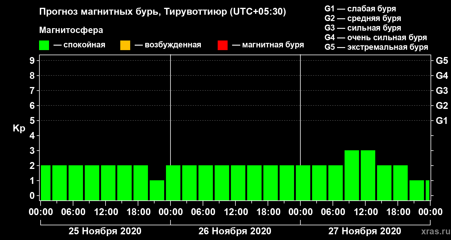 Прогноз магнитных бурь в Тирувоттиюре — 25 ноября 2020 года