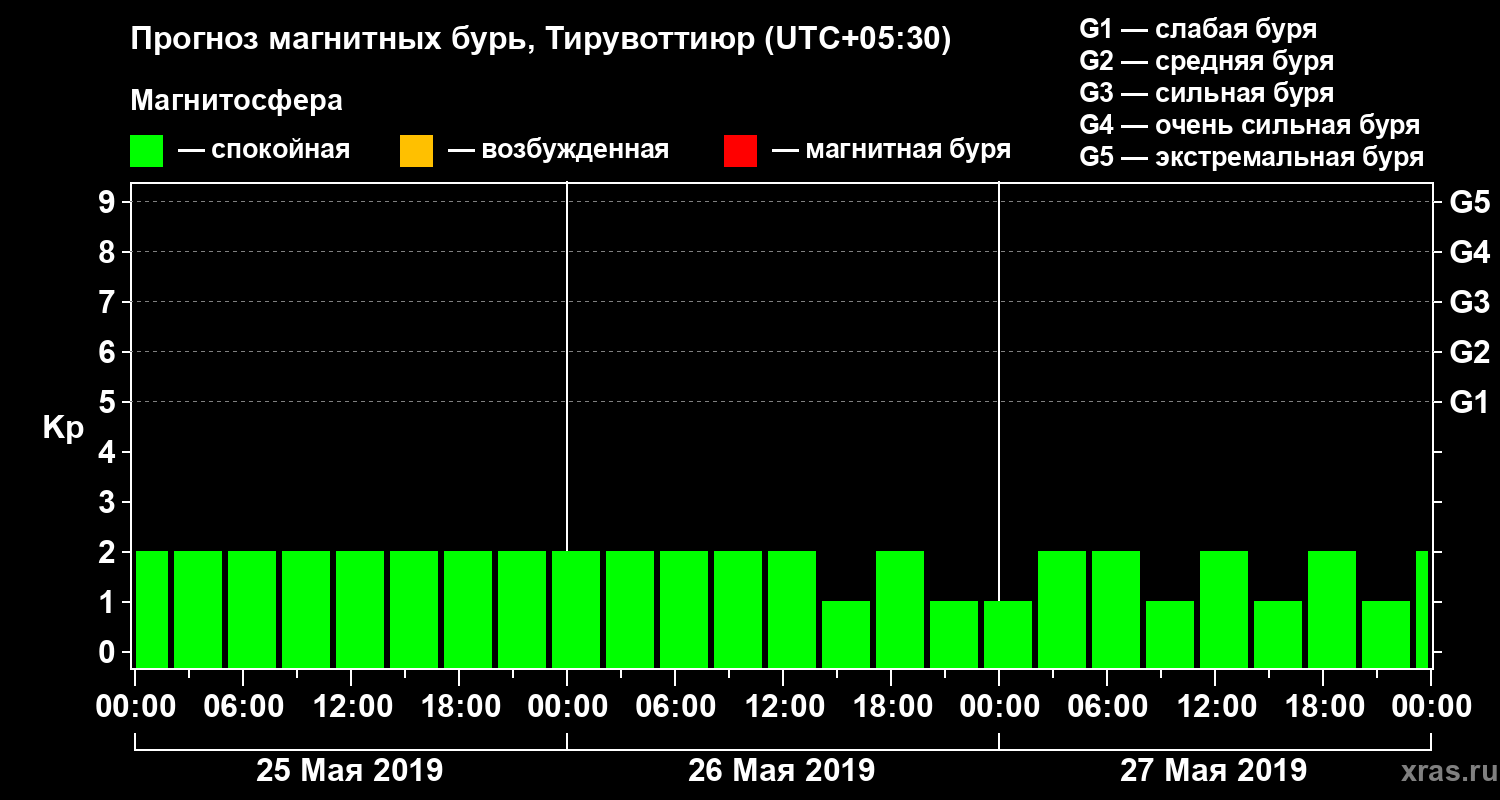 Прогноз магнитных бурь в Тирувоттиюре — 25 мая 2019 года
