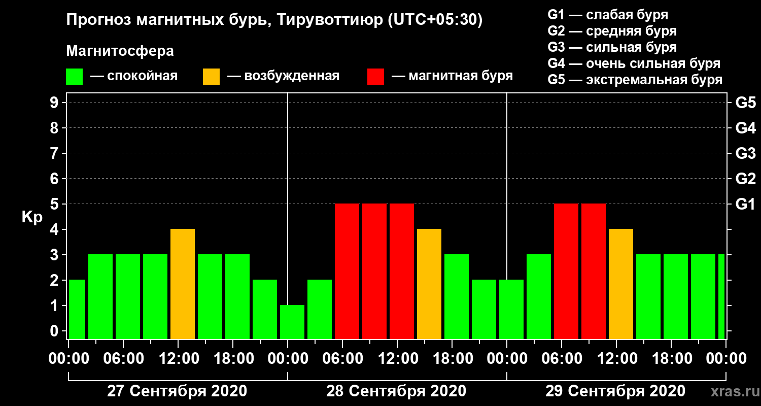 Прогноз магнитных бурь в Тирувоттиюре — 27 сентября 2020 года