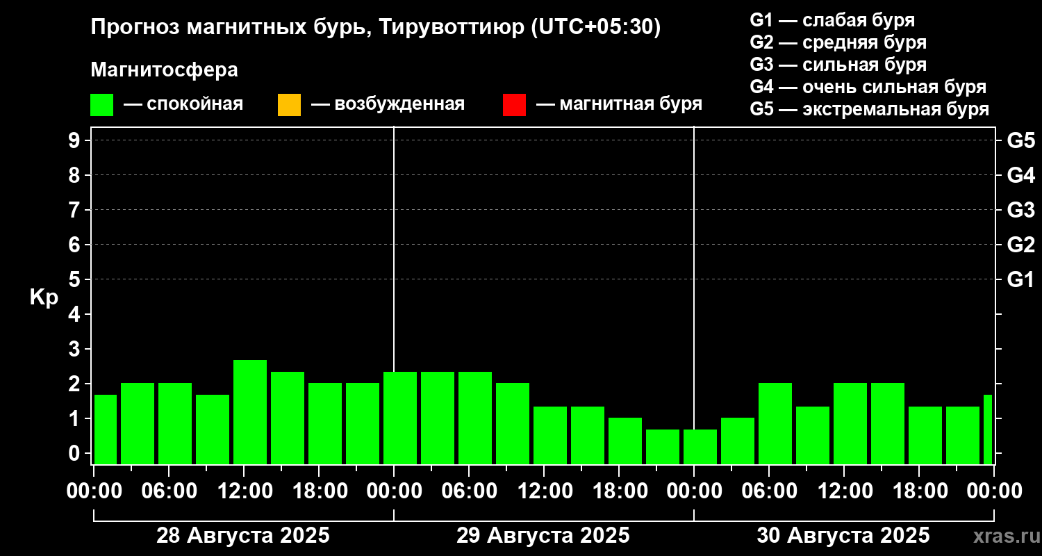 Прогноз магнитных бурь в Тирувоттиюре — 28 августа 2025 года