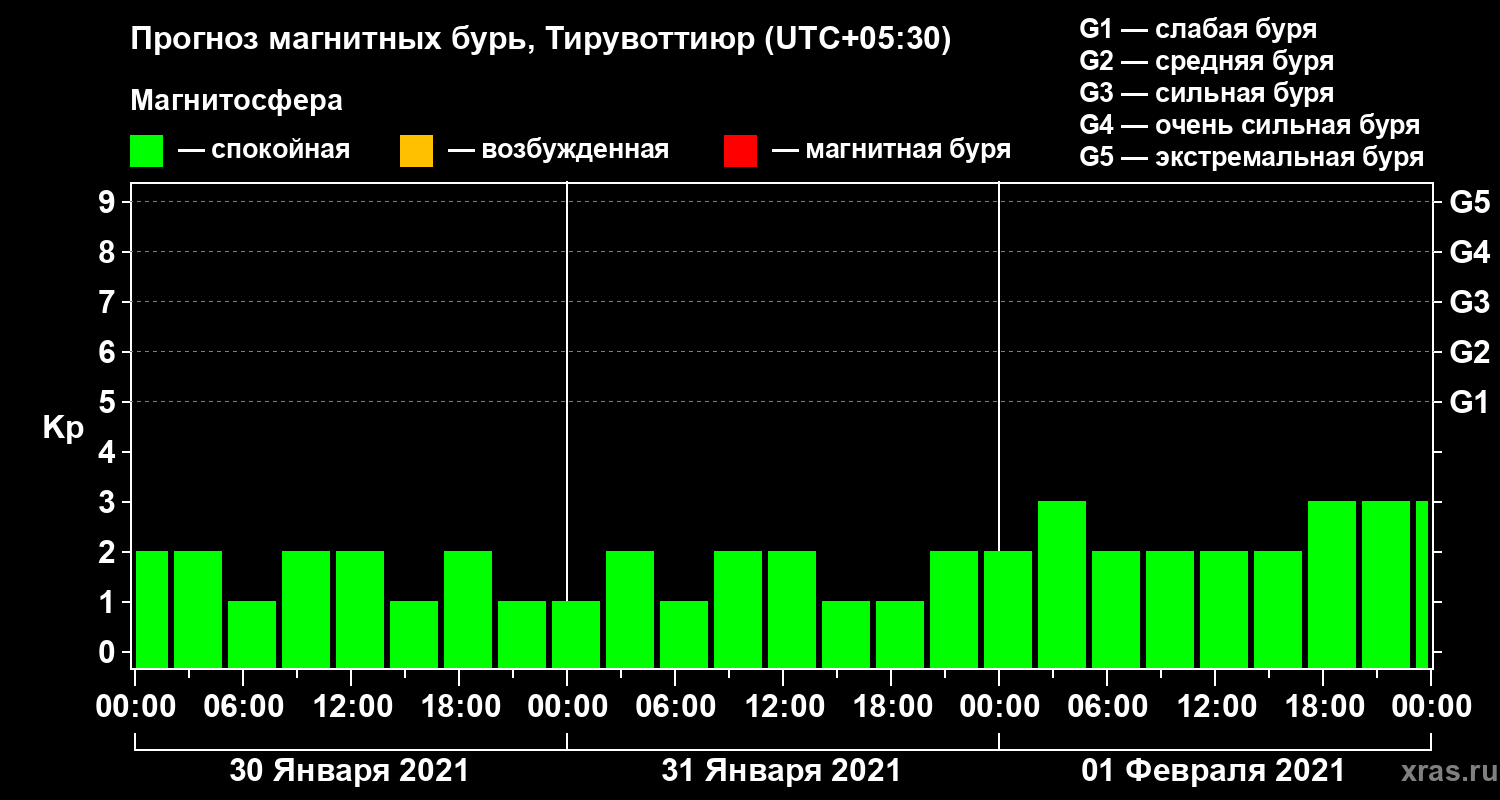 Прогноз магнитных бурь в Тирувоттиюре — 30 января 2021 года