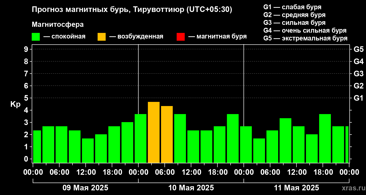 Прогноз магнитных бурь в Тирувоттиюре — 9 мая 2025 года