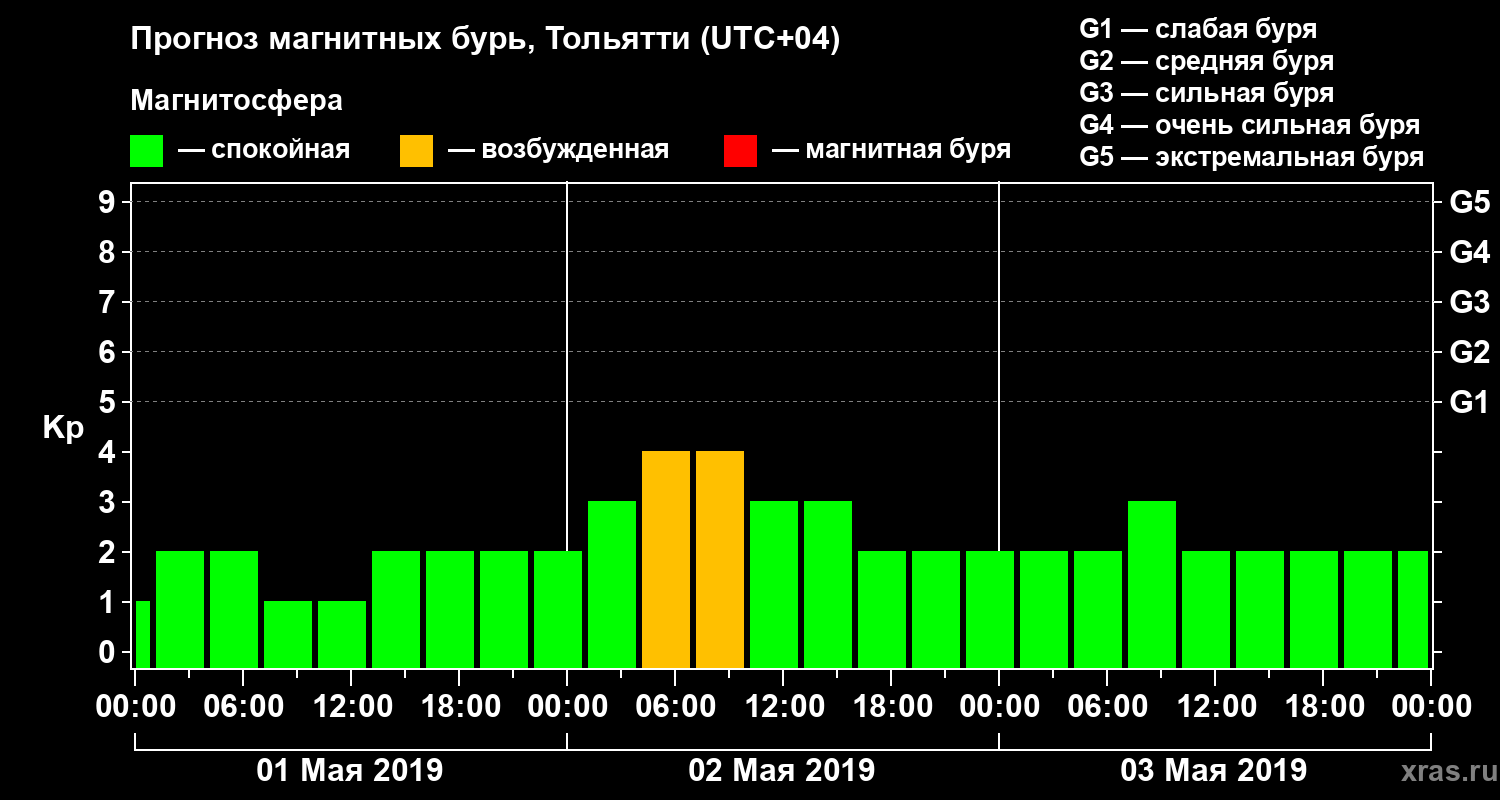Прогноз магнитных бурь Тольятти — 1 мая 2019 года