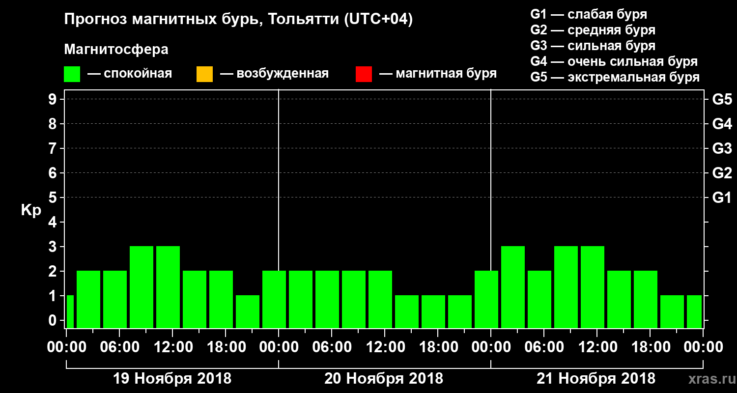 Прогноз магнитных бурь Тольятти — 19 ноября 2018 года