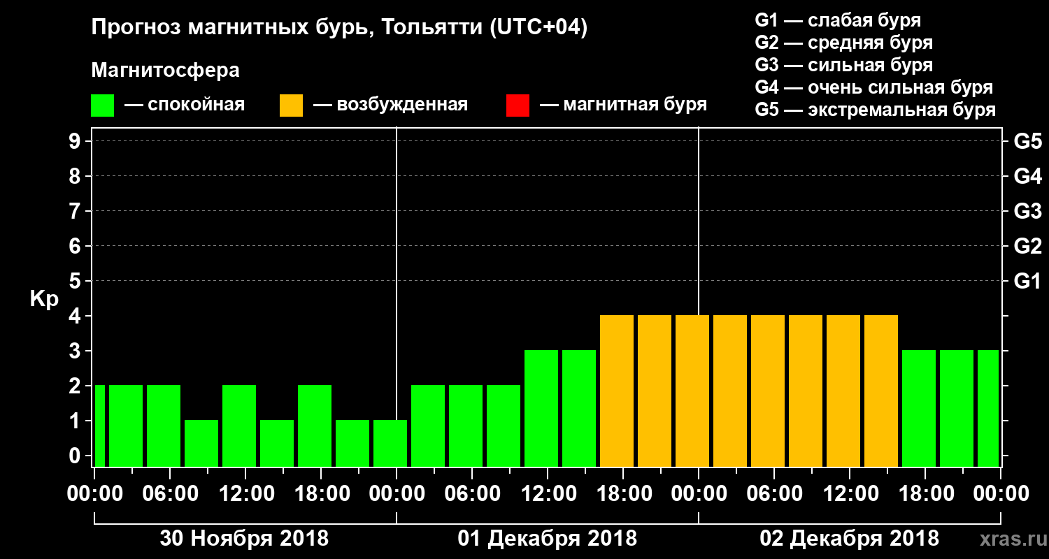 Прогноз магнитных бурь Тольятти — 30 ноября 2018 года