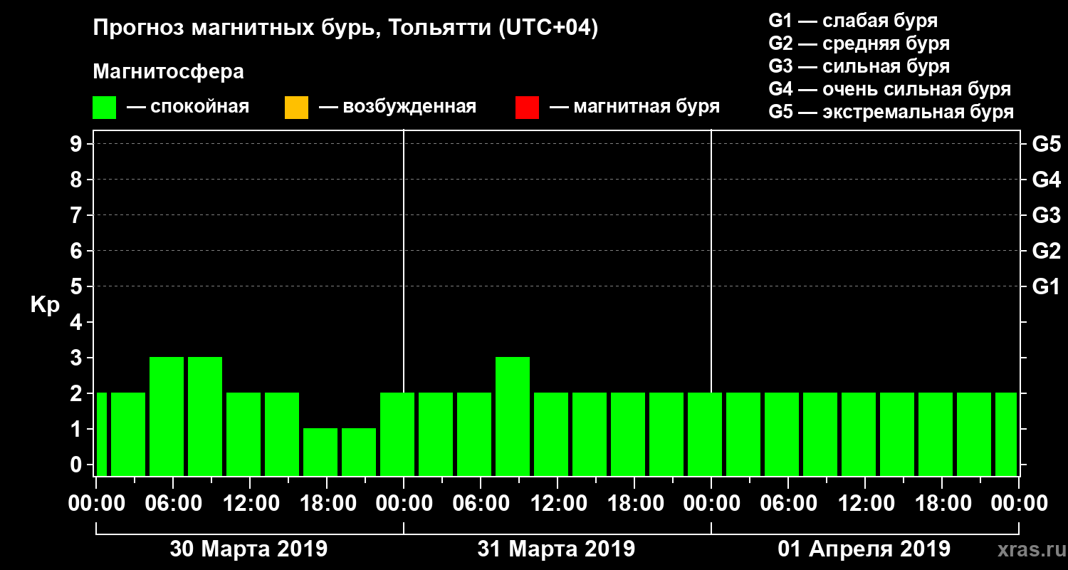 Прогноз магнитных бурь Тольятти на 30 марта 2019 года
