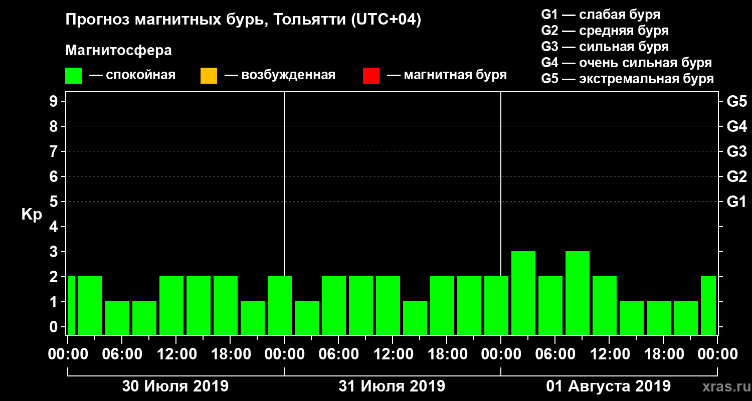 Прогноз магнитных бурь Тольятти — 30 июля 2019 года