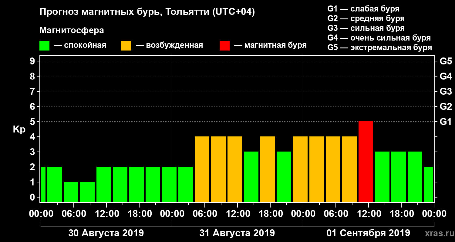 Прогноз магнитных бурь Тольятти — 30 августа 2019 года