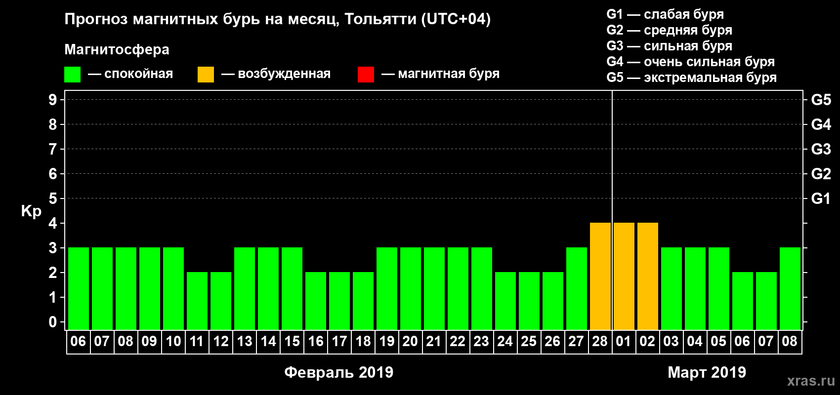 Прогноз магнитных бурь Тольятти на 6 февраля 2019 года